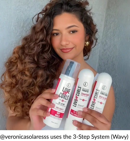 Tighter and more defined, curly hair forms in spirals or ringlets that range in size, from loose loops to tighter corkscrews. This curl type often experiences more dryness and frizz, so it thrives with added moisture and definition.